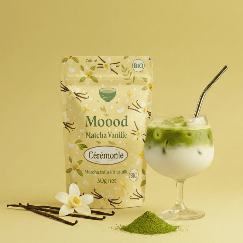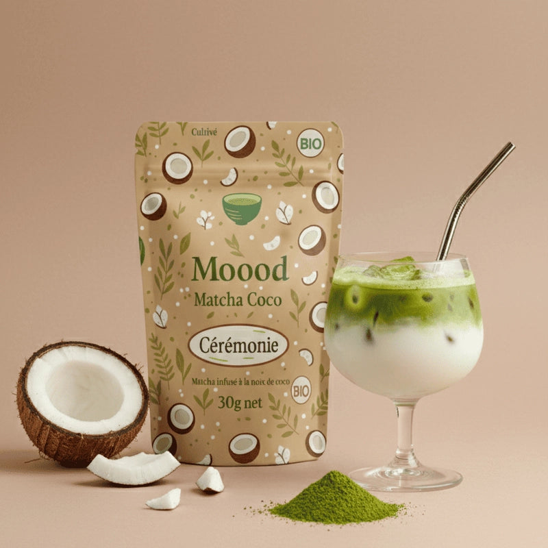 Matcha smak naturalny : 100% ekologiczna matcha. Matcha waniliowa : Ekologiczna matcha, naturalny aromat waniliowy. Matcha kokosowa : Ekologiczna matcha, naturalny aromat kokosowy.